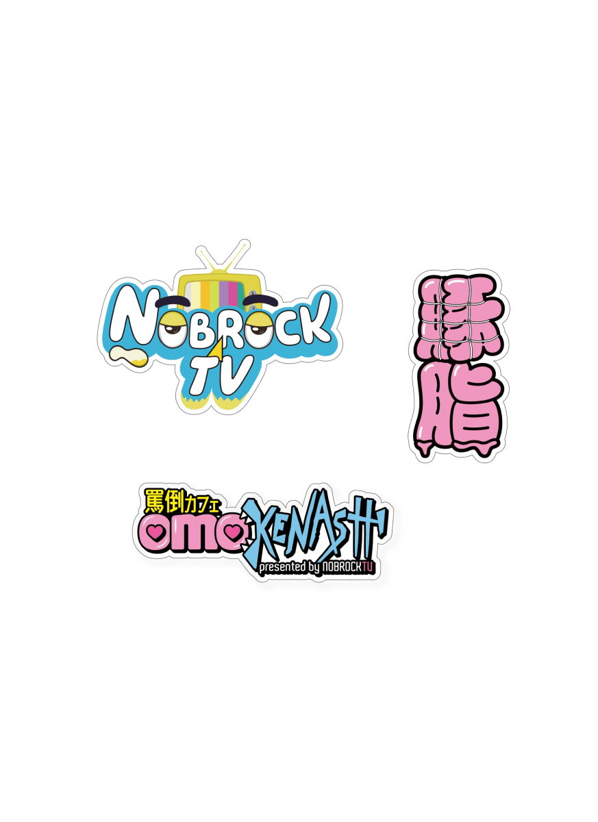 「NOBROCK TV / 罵倒カフェOMOKENASHI / 豚脂」ロゴステッカーセット